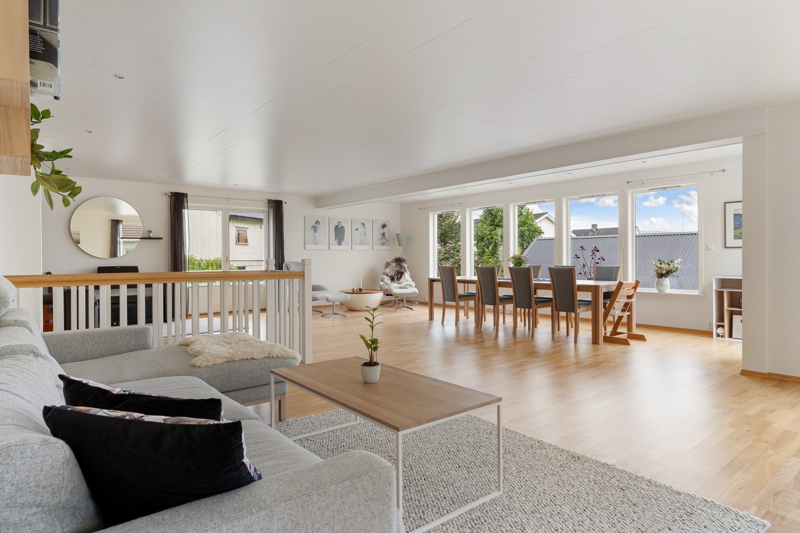 | Beliggenhet | Boligen ligger flott til sentralt i Tromsdalen, kun ca. 3-4 minutters kjøretur fra bruhodet. Veletablert område, attraktivt for både store og små. Flere barnehager i nærheten, barneskole og ungdomsskole. Beliggenheten er svært rolig med umiddelbar nærhet til turområder - blant annet Sherpa- trappa og Fløyfjellet. Nærmeste busstopp er Åsveien, ca. 2 minutters gange fra boligen. Rute 26 med hyppige bussavganger. Lysløypen og et mangfold av stier er mye brukt til gåturer, ski og sykkelturer. Lokalbutikk med godt utvalg. Gode sol- og lysforhold på tomten. Kort vei til Båthavna med stopp for buss 20 og 24, samt ekspressbuss til UNN/UiT. |