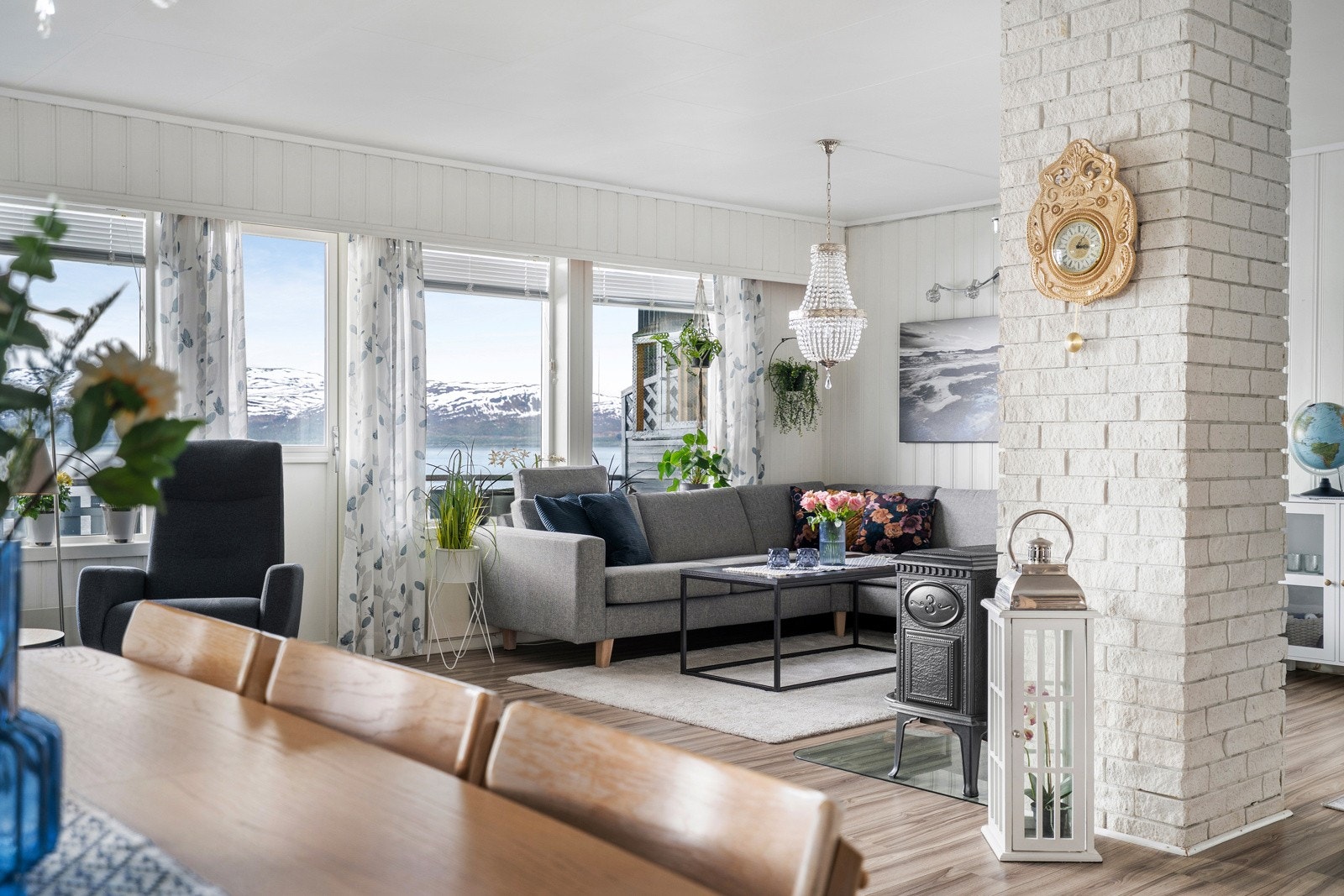 Totalvurdering | Velkommen til Storvikveien 812 - Stor og innholdsrik enebolig med utsikt, stor og solrikt tomt og nærhet til havet! Boligen har hele fem soverom fordelt på to plan, og byr på gode løsninger for både familieliv, hobby og oppbevaring. I hovedetasjen finner du en romslig entré, to soverom, et pent bad og et praktisk vaskerom med direkte utgang til en stor terrasse. Her er det rikelig med plass til utemøbler og grill - perfekt for lange sommerkvelder! Stuen er lys og luftig med store vindusflater som rammer inn den flotte utsikten. Den åpne løsningen mellom stue, spisestue og kjøkken skaper en sosial sone med naturlig flyt. Peisen i stua gir både varme og atmosfære på kjølige dager. Kjøkkenet er praktisk utformet med rikelig skap- og benkeplass, og vaskerommet ligger like ved for enkel hverdagslogistikk. Kjelleretasjen rommer tre soverom, en kjellerstue, bad, tre boder og et eget kjølerom - Ideelt for oppbevaring av mat og utstyr. Også her er det terrasse med god plass og tilknytning til hagen. Uteområdet er generøst med stor tomt, drivhus, naust, garasje og utebod. Her er det rike muligheter for både dyrking, oppbevaring og sjøliv. Med umiddelbar nærhet til havet og vakre omgivelser rundt, ligger alt til rette for et liv nært naturen, samtidig som boligen har plass og funksjon til å romme en aktiv hverdag. Dette er en bolig med stort potensial og mange bruksområder. Fra boligen er det ca. 3,5 time med bil til Tromsø, og nærmeste tettsted er Storslett med skole, butikker og servicetilbud. En flott bolig med muligheter for hele familien - Både nå og i framtiden! Høydepunkter: Utsikt Stor tomt Naust Garasje Naturskjønn Familievennlig Nærhet til havet Velkommen til visning! |