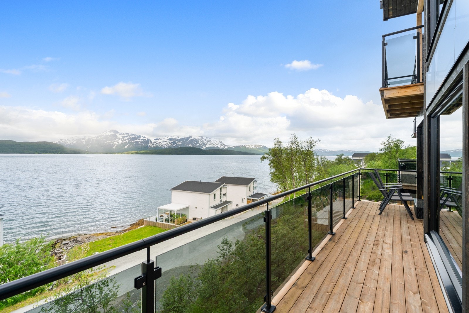 Velkommen til Malangen Brygger hytte nr. 23! Her får du en lys og luftig fritidsbolig over to plan med gjennomgående god standard og smakfulle materialvalg. I første etasje møtes du av en romslig entre, og videre inn i stua åpner det seg en fantast isk utsikt gjennom store vindusflater. En lun peis mellom stue og spisestue. Utgang til en solrik balkong fra spisestua. Kjøkkenet er fra Drømmekjøkkenet. I andre etasje finner du tre romslige soverom. Hovedsoverommet har egen balkong med utsikt. Flislagt bad med dusjhjørne og opplegg for vaskemaskin, i tillegg til separat toalettrom i første etasje. Hytta har også sportsbod, parkering på tomta og elbillader. Høydepunkter: Høydepunkter: Panoramautsikt. Balkonger. Peis. El-bil lader. Sportsbod. Turområder. Mulighet for gode leieinntekter!. Velkommen til visning!