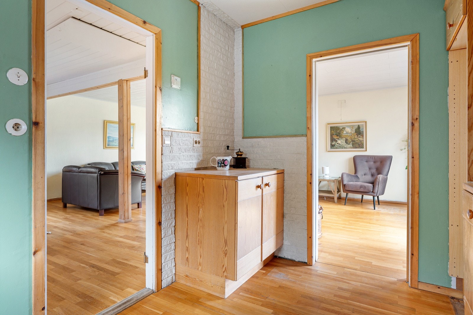 Standard | Innvendige overflater Innvendig er det gulv av parkett, laminat, betong og belegg. Veggene har trepanel, malte plater, betong og Strie. Innvendige tak har malte plater og trepanel. Kjøkken Kjøkkenet har innredning med glatte fronter i tre. Benkeplaten er av laminat. Det er opplegg til oppvaskmaskin og komfyr. Det er kjøkkenventilator med avtrekk ut. Bad (hoved) 1 innfliset badekar, 1 dusjhjørne, 1 servant m/innredning. Opplegg til vaskemaskin, skyllekar, varmtvannstank. Flislagt gulv, fliser og malt mur på vegger. Ventil i vegg. Toalettrom 1 wc, 1 servant. Vinylbelegg på gulv, malt panel på vegger. Ventil i vegg. Bad (hybel) 1 dusjkabinett, 1 servant m/innredning, 1 wc. Vinylbelegg på gulv, fliser og malt glassfibervev på vegger. Naturlig avtrekk. Tekniske installasjoner Innvendige vannledninger er av kobber, avløpsrør i plast. naturlig ventilasjon og avtrekk fra kjøkkenventilator. Luft-til-luft varmepumpe fra 2023 og varmtvannstank på 200L fra 2011. Tilstandsgradene tilsier hvilken tilstand et objekt har i forhold til definert referansenivå. Nedenfor angis en kort oppsummering der den bygningssakkyndig har beskrevet avvik ved boligen som har fått tilstandsgrad 2 (TG2) eller tilstandsgrad 3 (TG3). Opplistingen nedenfor er ikke uttømmende og du oppfordres til å lese og sette deg grundig inn i salgsmateriellet. For nærmere forklaring av tilstandsgrader og hva de angir, se vedlagte tilstandsrapport. Fordeling av tilstandsgrader: TG 0 - Ingen avvik TG 1 - Mindre eller moderate avvik TG 2 - Avvik som ikke krever umiddelbare tiltak TG 2 - Avvik som kan kreve tiltak TG 3 - Store eller alvorlige avvik TG IU - Konstruksjoner som ikke er undersøkt TG 3 - Store eller alvorlige avvik - Pipe og ildsted Pipevanger er ikke synlige. Det anbefales en kontroll av pipe og ildsted. Selger opplyser om at pipe og ildsted ikke har vært i bruk siste 15 år jf. egenerklæring. - Krypkjeller - under hybelleilighet Det er ikke adkomst til deler av krypkjelleren og er kun vurdert i tilgjengelige deler. Det er påvist skader på konstruksjoner i krypkjeller som er forårsaket av råte eller sopp. Det er stedvis påvist fuktnivå som tilsier at konstruksjonen kan ha fuktskader. Det er begrenset ventilering/luftgjennomstrømning i krypkjeller. - Elektrisk anlegg Tilstandsgraden er vurdert ut fra den forenklede og begrensede kontrollen som forskriften (avhendingslova (tryggere bolighandel) § 2-18) inneholder. El-anlegget kan ha feil og mangler som en slik forenklet undersøkelse ikke vil avdekke. Se tilstandsrapport for fullstendig beskrivelse av punkt. - Bad i kjeller og hybelleilighet Våtrommene må oppgraderes for å tåle normal bruk etter dagens krav. TG IU - Konstruksjoner som ikke er undersøkt - Etasjeskille/gulv mot grunn Etasjeskiller er av trebjelkelag, det er støpt plate i del av 0. etasje. Det er ikke målt høydeforskjell på gulvene da det er vanskelig å måle nøyaktig på grunn av møblering i rommene. TG 2 - Avvik som kan kreve tiltak - Taktekking og takkonstruksjon/Loft Mer enn halvparten av forventet brukstid er passert på undertak og det er påvist overflaterust på plateender. Det er påvist avvik rundt gjennomføringer i takflaten. Det er påvist muselort på kaldloft. Utvendig - Nedløp og beslag Det mangler snøfangere på hele eller deler av taket, men det var ikke krav om dette på byggemeldingstidspunktet. Det mangler tilfredsstillende adkomst til pipe for feier. - Veggkonstruksjon Det er ingen eller liten lufting i nedre kant av kledning mot grunnmur. Det er ingen musesperre i nedre kant av konstruksjon. Det er stedvis værslitt/oppsprukket utvendig kledning. - Vinduer Karmene i vinduer er slitte og det er sprekker i trevirket. De fleste vinduene har høy alder og nedsatt isolasjonsevne, noen vinduer har fuktskader. - Balkonger, terrasser og rom under balkonger Mer enn halvparten av forventet brukstid er passert på tettesjikt/membran. Rekkverket er for lavt i forhold til dagens krav til rekkverkshøyder. - Utvendige trapper Åpninger i rekkverk er ikke i henhold til krav i dagens forskrifter. Innvendig - Overflater Noen overflater har noe forhøyet slitasje. - Radon Det er ikke foretatt radonmålinger, og bygget er heller ikke utført med radonsperre. - Krypkjeller Det er ikke adkomst til deler av krypkjelleren og er kun vurdert i tilgjengelige deler. Det er stedvis påvist fuktnivå som tilsier at konstruksjonen kan ha fuktskader. Det er manglende fuktsperre på bakken. - Innvendige trapper Åpninger i rekkverk er større enn dagens forskriftskrav til rekkverk i trapper og det mangler håndløper på vegg i trappeløpet. - Innvendige dører Enkelte dører subber/tar i terskel, det er stedvis stor slitasje på dørtrykkerter/mekanisme. - Andre innvendige forhold Det er antatt at det er mus i boligen. Se også selgers egenerklæring om forholdet. - Tekniske installasjoner Mer enn halvparten av forventet brukstid er passert på innvendige vann- og avløpsledninger. Tomteforhold - Fuktsikring og drenering Det mangler, eller på grunn av alder er det sannsynlig at det mangler, utvendig fuktsikring av grunnmuren ved kjeller/underetasje. Mer enn halvparten av forventet levetid på drenering er overskredet. - Grunnmur og fundamenter Det er registrert sprekkdannelser i grunnmur ved inngang i tilbygget i 0. etasje. - Terrengforhold Det er påvist dårlig fall eller flatt terreng inn mot grunnmur og dermed muligheter for større vannansamlinger. - Kjøkken Innredningen har stedvis høy slitasje, det er svelleskade på benkeplate og benkeskap. - Tilliggende konstruksjoner våtrom Hulltaking er foretatt og det er påvist avvik i konstruksjonen. - Toalettrom Toalettrom har kun naturlig avtrekk fra rommet, NS 3600 krever mekanisk avtrekk for å kunne gi TG 0/1. Toalettrom mangler tilluftsventilering, f.eks. spalte/ventil ved dør. Vannrør og avløp fra servant er ført gjennom vegg til innfliset badekar. - Hybelkjøkken Det er svelleskade på innredningen. Avløp fra