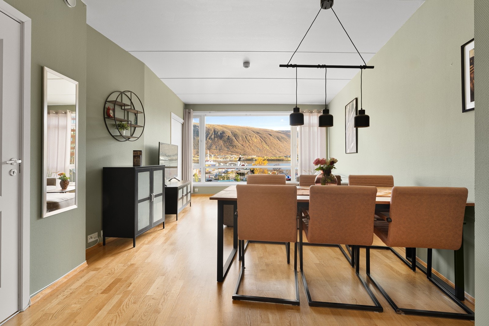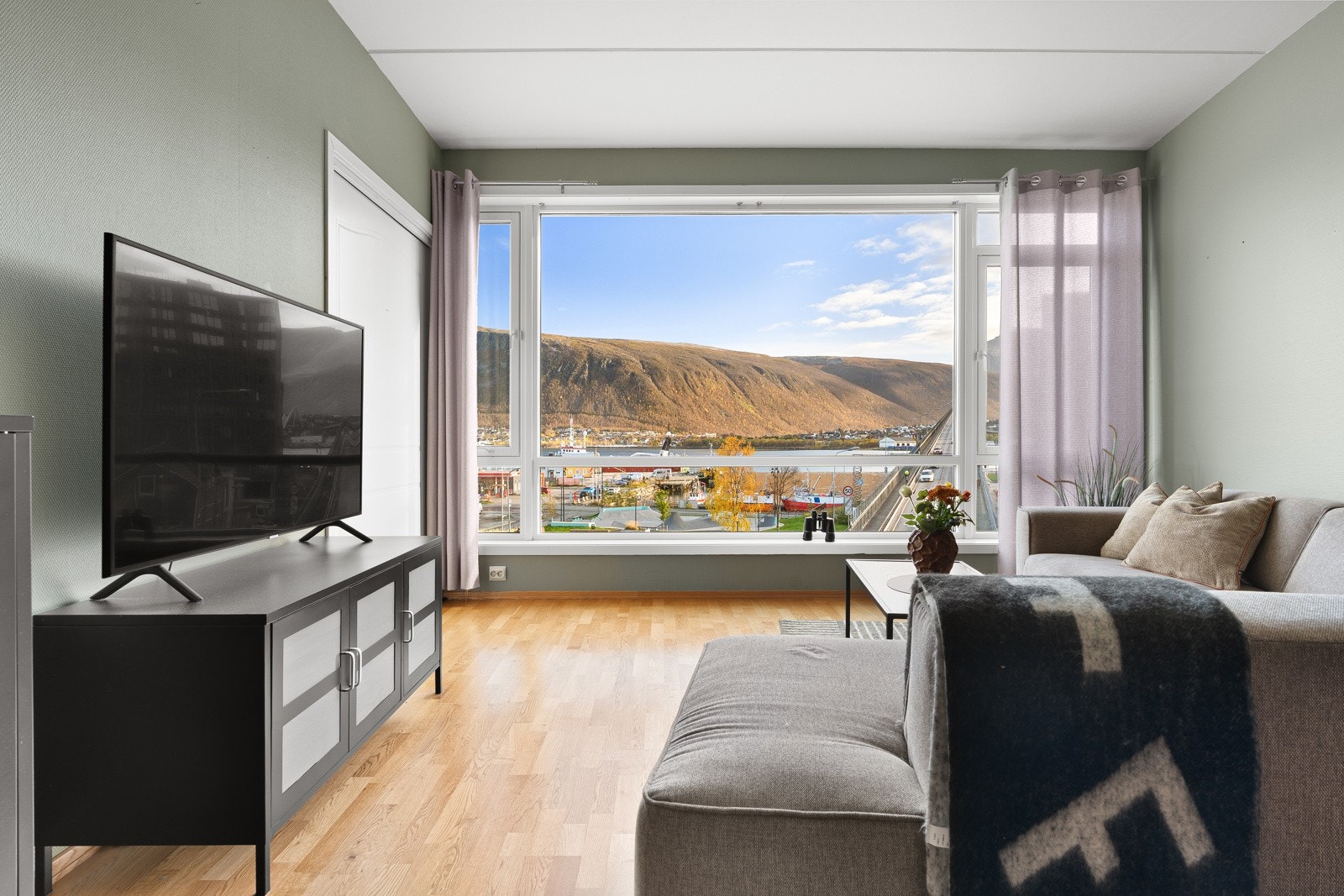 Velkommen til Skippergata 32 - En lys og tiltalende 3-roms leilighet med flott utsikt mot Tromsøbrua og Tromsdalstind. Med sentral beliggenhet, to soverom, store vindusflater og et praktisk kjøkken, passer boligen perfekt for deg som ønsker nærhet til både sentrum og natur. Leiligheten har skjermet bakgård, overbygd inngangsparti og gangavstand til det meste - samt gode bussforbindelser til UiT, UNN og flyplassen. Høydepunkter: Fantastisk utsikt mot Tromsøbrua og Tromsdalstind. To soverom. IN-ordning. Store vindusflater og rikelig med dagslys. Flislagt bad med opplegg til vaskemaskin. Praktisk kjøkken med slette fronter. Skjermet bakgård og overbygd inngangsparti. Svært sentral beliggenhet med gangavstand til sentrum. Gode bussforbindelser til UiT, UNN, flyplassen og Jekta. Velkommen til visning!.