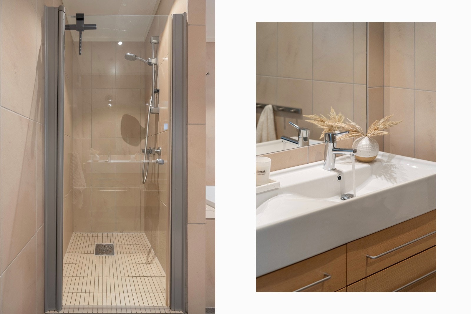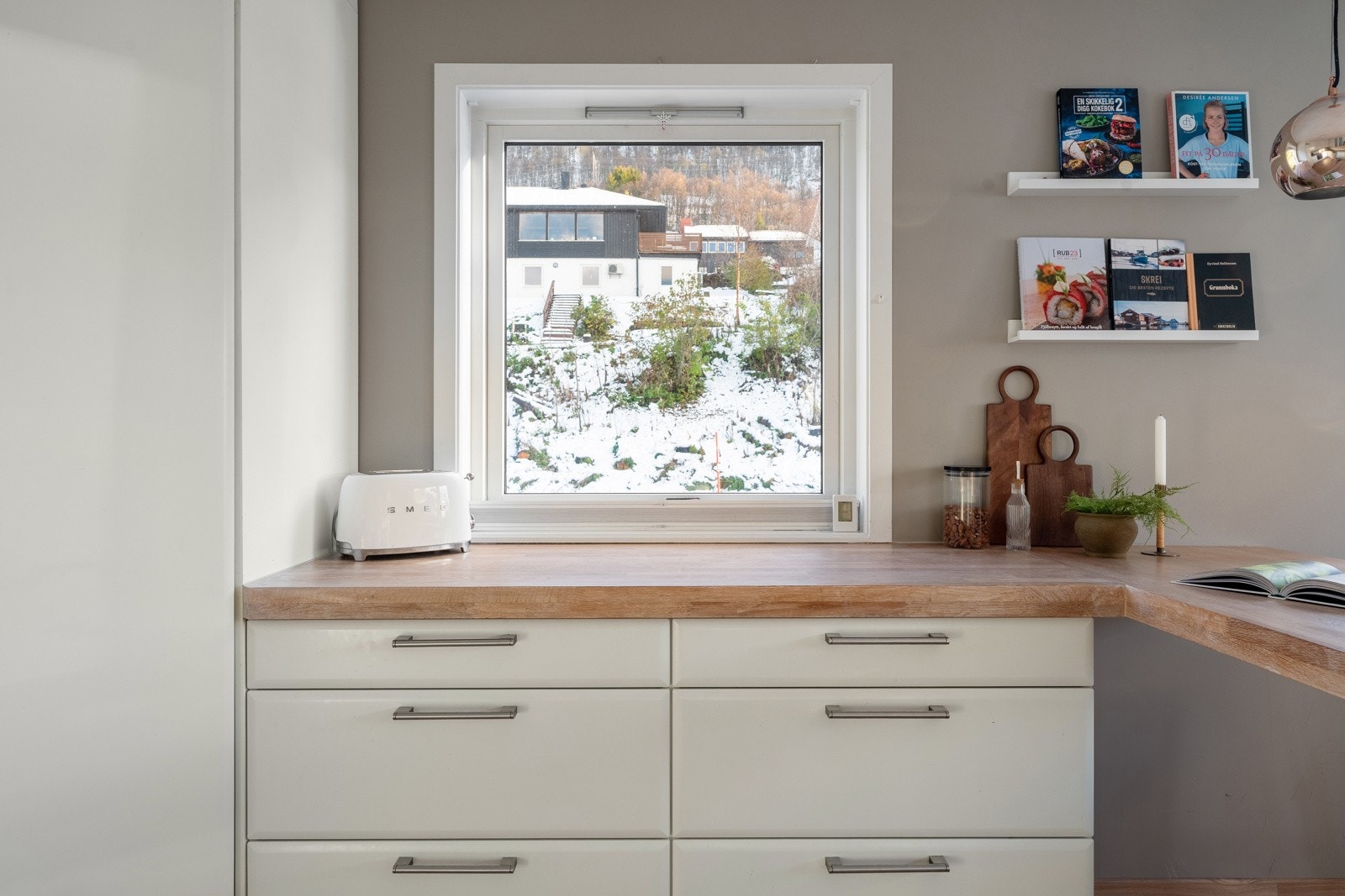 | Standard | Enebolig fra ca. 2006 som er tatt i bruk i ca. 2007/2008. Boligen er tilbygd i ca. 2008 med nytt vindfang. Boligen fremstår som normalt godt vedlikeholdt og har en fin planløsning over tre plan.  E N T R É Takoverbygd inngangsparti med terrasse og trappefri adkomst. Innbydende entré med malte veggoverflater, gulvbelegg, gulvvarme og praktisk skyvedørsgarderobe med gode oppbevaringsmuligheter for yttertøy og sko. Det er glassdør mellom entre og gang/trapperom. Romslig gang/trapperom med garderobeskap og plass til ekstra kommode eller skoskap. Innvendig trapp mellom etasjene med innetrinn med beiset/lakkerte treverk S T U E & K J Ø K K E N Familievennlig planløsning med åpen stue- og kjøkkenløsning, som skaper et fantastisk allrom for hele familien! Det er lagt nytt gulv i hovedetasjen i 2023. Stue med malte veggoverflater og store vinduer som gir rikelig med lys inn. Nydelig utsikt mot sjø, fjell og vakker natur! Stuen har innfelte downlights i himling (nye LED fra 2025). Stilfull vedovn, som står sentralt plassert i stue. Fra stue er det utgang til en stor, vestvendt veranda med god plass til hagemøbler og grill. Her kan du nyte de gode solforholdene og utsikten! Kjøkkeninnredning med glatte fronter, heltre benkeplate med nedfelt oppvaskkum. Det er fliser over benk. Ventilator over kokesone med avtrekk ut. Integrert stekeovn, induksjonstopp, microbølgeovn og oppvaskmaskin, samt kjølehjørne fra 2021. Kjøkkenet har gjennomtenkte løsninger med godt med skuffer, skap og benkeplass. Det er barløsning mot spisestue med to sitteplasser, som gjør det enkelt å hjelpe barna med leksene eller å underholde gjestene mens man tilbereder maten. Sugebrett i sokkel, som er koblet til sentralstøvsuger. Spiseplassene har sin naturlige plass like ved kjøkkenet. Her er det god plass til langbord hvor man kan samles til middager med venner og familie. Koselig og romslig tv-stue i loftsetasje med god plass til sofa og tv-møblement, samt store vindusflater som bevarer den flotte utsikten! Et perfekt rom hvor familien kan samles til filmkvelder eller et perfekt rom for barna eller ungdommen i huset! S O V E R O M Boligen har fem soverom - tre av soverommene er i sokkeletasje og to i loftsetasje. Hovedsoverom med malte veggoverflater, nyere gulv og praktisk garderobeskap fra Pax med skyvedører. Soverom 2 er av god størrelse og har utgang til terrasse. Soverom 3 med malte veggoverflater. Det er lagt nytt gulv i 2023 på alle soverom i 1. etasje. Soverom 4 og 5 er i loftsetasje. Det var opprinnelig ett stort soverom i loftsetasje, som er delt i to. B A D / W C / V A S K E R O M Boligen har to baderom og separat vaskerom. Flislagt bad/wc med gulvvarme, vegghengt wc, badekar, dusjnisje med glassdør og baderomsinnredning med heldekkende dobbel servant og speil med belysning. Det er avtrekk med elektrisk styrt vifte. Bad/wc i loftsetasje med fliser på gulv, vegghengt wc, baderomsinnredning med skuffer, heldekkende servant. Dusjnisje med fliser på vegg og glassdør. Separat vaskerom med gulvvarme, vinylbelegg på gulv, nyere vaskeromsinnredning fra 2020 med skuffer og skap, skyllekum og opplegg for vaskemaskin og plass til tørketrommel. Det er avtrekk via elektrisk styrt vifte B O D En innvendig bod med garderobeløsning og plass til fryseskap. I N N V E N D I G E O V E R F L A T E R Gulv: Parkett, fliser og belegg. Vinylbelegg på vaskerom. Fliser på bad Vegger: Sparklet og malt gips og malte plater. Fliser på bad Himling: Sparklet og malt gips og panel. Gulvvarme på soverommene i første etasje, entre, hall, vaskerom og på badene. G A R A S J E Garasje på 32 kvm med hems for ekstra lagringsplass. Leddport med portåpner og tilrettelagt for tilkobling av el-billader. T I L S T A N D S V U R D E R I N G Tilstandsgradene tilsier hvilken tilstand et objekt har i forhold til definert referansenivå. Nedenfor angis en kort oppsummering der den bygningssakkyndig har beskrevet avvik ved boligen som har fått tilstandsgrad 2 (TG2) eller tilstandsgrad 3 (TG3). Opplistingen nedenfor er ikke uttømmende og du oppfordres til å lese og sette deg grundig inn i salgsmateriellet. For nærmere forklaring av tilstandsgrader og hva de angir, se vedlagte tilstandsrapport. TG3 - Utvendig: - Nedløp og beslag Det mangler snøfangere på hele eller deler av taket, noe som var krav på byggemeldingstidspunktet. Det må monteres snøfangere for å oppfylle byggeårets krav Kostnadsestimat: 50 000 - 100 000 - Våtrom > Loft > Bad > Overflater Gulv Det er fall mot døren utenfor dusjsonen.Terskel til dusjen er fuget tett, ved en eventuell lekkasje utenfor dusjsonen vil ikke vann ledes til sluk. Kostnadsestimat: 100 000 - 300 000 TGIU - Utvendig - Takkonstruksjon/Loft Hele takkonstruksjonen er gjenbygget. Det er ingen mulighet til vurdering utover alder og observasjoner fra underliggende etg. TG2 - Utvendig: - Taktekking Mer enn halvparten av forventet brukstid er passert på taktekkingen. Det er mose på nordsiden av taket. Konsekvens/tiltak Overvåk tilstanden jevnlig. - Veggkonstruksjon Musesperre må etableres. - Vinduer Det er ikke oppbretter på beslag under vindu mot vindussmyg, slik at vann kan renne inn bak kledningen. Utvendig omramming er montert for nært vannbrettet, dette fører til lettere vannoppsug. Det bør påregnes at enkelte vinduer må justeres - Balkonger, terrasser og rom under balkonger Rekkverket er for lavt i forhold til dagens krav til rekkverkshøyder. Rekkverk og terrassedekke er værslitt - Utvendige trapper Det bør monteres håndløper. TG2 - Innvendig - Radon Det er ikke foretatt radonmålinger, og bygget er heller ikke utført med radonsperre. Det bør gjennomføres radonmålinger. - Våtrom > 1. Etasje > Vaskerom > Overflater Gulv Det er påvist høydeforskjell fra topp slukrist til gulv/synlig topp membran ved dørtersekl er mindre enn 25 mm - Våtrom > 1. Etasje > Vaskerom > Sluk, membran og tettesjikt Det er påvist mangelfull/feil utførelse rundt rørgje