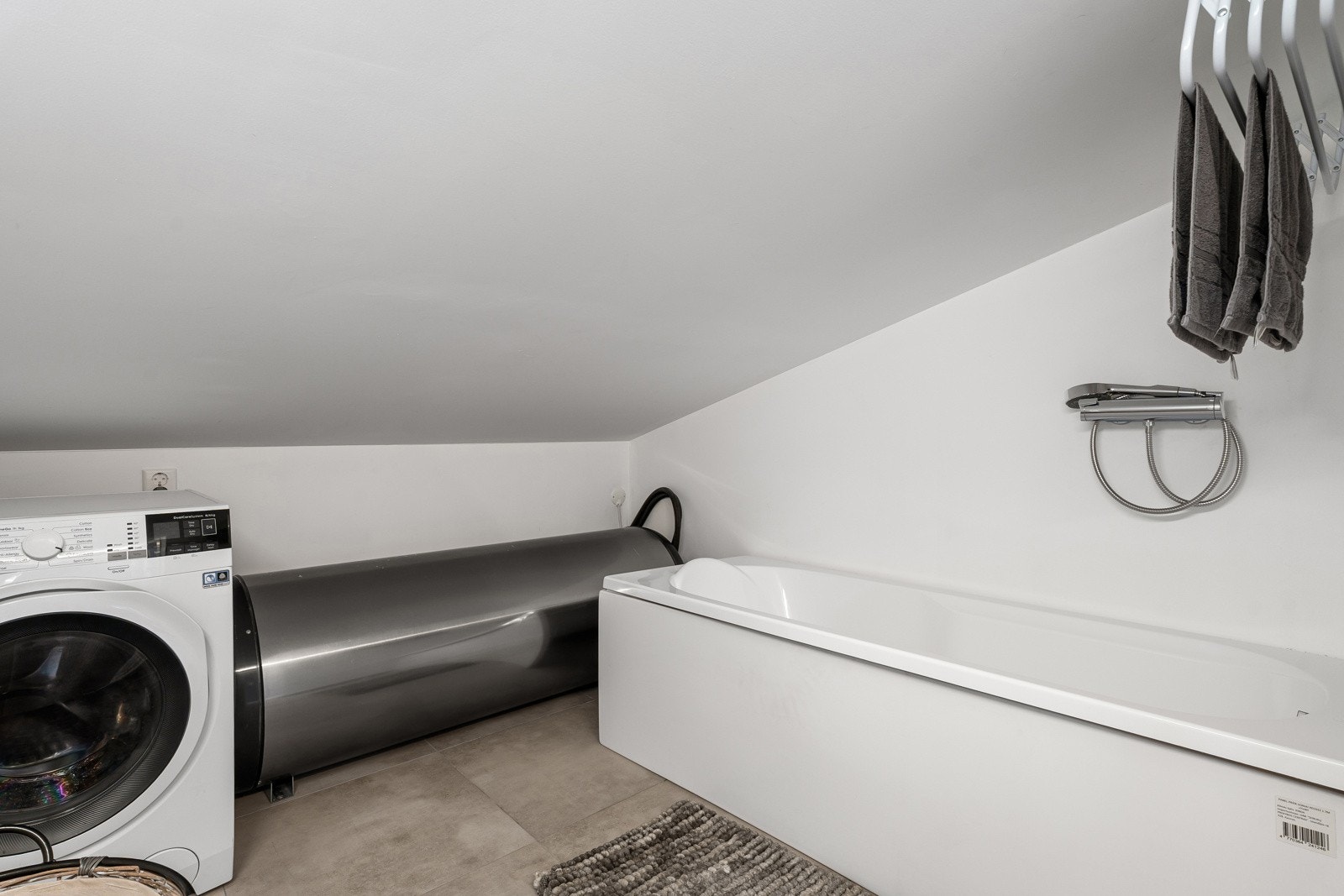 | Standard | INNVENDIGE OVERFLATER Innvendig er det gulv av parkett, laminat, fliser vinyl, klikkvinyl. Veggene har malte plater, spaltepanel. Innvendige tak har gipsplater. VÅTROM Bad/vaskerom/wc* Aktuell byggeforskrift er teknisk forskrift 2010. Dokumentasjon: bilder. 3. etasje, loft. Bad/wc/vaskerom: 1 badekar, 1 wc m/innebygd sisterne, 1 servant m/servantskap, opplegg til vaskemaskin. 1 varmtvannstank. Rørskap. Fliser m/sokkelflis på gulv, malte plater med våtromsmaling og fliser på vegger. Det er ikke ventilasjon fra rommet. Bad/dusj/wc Aktuell byggeforskrift er teknisk forskrift 2010. Dokumentasjon: bilder. 2. etasje. Bad/dusj/wc: 1 dusjhjørne, 1 badekar, 1 servant m/innredning, 1 wc m/innebygd sisterne. Fliser m/sokkelflis på gulv, malte plater med våtromsmaling og fliser på vegger. Avtrekksvifte i vegg. Vaskerom Aktuell byggeforskrift er teknisk forskrift 2010. Dokumentasjon: bilder. 1. etasje. Vaskerom: 1 skyllekar i benk, opplegg til vaskemaskin. Fliser på gulv, ferdigmalte panelplater og baderomsplater på vegger. Avtrekksvifte i himling. Dusj/wc/vaskerom Aktuell byggeforskrift er teknisk forskrift 2010. Dokumentasjon: bilder. 1. etasje. Dusj/wc/vaskerom: 1 dusjhjørne, 1 servant, 1 wc m/innebygd sisterne, 1 varmtvannstank. Opplegg til vaskemaskin. Fliser m/sokkelflis på gulv, malte plater med våtromsmaling og fliser på vegger. Avtrekksvifte i himling. Dusj/wc Aktuell byggeforskrift er teknisk forskrift 2010. Dokumentasjon: bilder. 1. etasje. Dusj/wc: 1 dusjhjørne, 1 servant, 1 wc m/innebygd sisterne. Fliser m/sokkelflis på gulv, malte plater med våtromsmaling og fliser på vegger. Avtrekksvifte i vegg. Bad/vaskerom Aktuell byggeforskrift er teknisk forskrift 2010. Dokumentasjon: bilder. 0. etasje. Dusj/wc/vaskerom: 1 servant m/innredning, 1 wc m/innebygd sisterne, 1 dusjhjørne, 1 varmtvannstank. Opplegg til vaskemaskin. Fliser m/sokkelflis på gulv, baderomsplater og fliser på vegger. Avtrekksvifte i vegg. KJØKKEN 0. Etasje: Kjøkkenet har innredning med glatte fronter, fliser over benk. Benkeplaten er av laminat. Det er kjøleskap, smal oppvaskmaskin, platetopp, stekeovn og komfyrvakt. Det er kjøkkenventilator med avtrekk ut. 1. Etasje: Kjøkkenet har innredning med glatte fronter. Benkeplaten er av laminat. Det er kjøleskap, fryseskap, oppvaskmaskin, platetopp, stekeovn, vannstoppsystem og komfyrvakt. Det er kjøkkenventilator med avtrekk ut. 2. Etasje: Kjøkkenet har innredning med glatte fronter, fliser over benk. Benkeplaten er av heltre. Det er kjøleskap, fryseskap, oppvaskmaskin, induksjonstopp, vinskap, mikro, stekeovn, vannstoppsystem og komfyrvakt. Det er kjøkkenventilator med avtrekk ut. TEKNISKE INSTALLASJONER Innvendige vannledninger er av plast (rør i rør). Det er besiktiget i rørskap. Det er 3 rørskap i boligen, et i 3. etasje, et i 1. etasje og et i 0. etasje. Det er avløpsrør av plast i synlige deler. Boligen har mekanisk ventilasjon. Avtrekk fra våtrom og kjøkken, tilluft via veggventiler. Det er installert luft til luft varmepumpe. Varmepumpen er fra 2016, den ble montert i boligen i 2022 av firma. Varmtvannstanken er på ca. 300 liter til 2 og 3. etasje, ca. 200 liter til 1. etasje og ca. 200 liter til 0. etasje. Det er 3 sikringsskap i boligen. Røykvarsler og brannslukningsapparat. TILSTANDSGRADER Tilstandsgradene tilsier hvilken tilstand et objekt har i forhold til definert referansenivå. Nedenfor angis en kort oppsummering der den bygningssakkyndig har beskrevet avvik ved boligen som har fått tilstandsgrad 2 (TG2) eller tilstandsgrad 3 (TG3). Opplistingen nedenfor er ikke uttømmende og du oppfordres til å lese og sette deg grundig inn i salgsmateriellet. For nærmere forklaring av tilstandsgrader og hva de angir, se vedlagte tilstandsrapport. Fordeling av tilstandsgrader: TG0: Ingen avvik TG1: Mindre eller moderate avvik TG2: Avvik som ikke krever tiltak TG2: Avvik som kan kreve tiltak TG3: Store eller alvorlige avvik TG IU: Konstruksjoner som ikke er undersøkt TG 3: STORE ELLER ALVORLIGE AVVIK Tomteforhold > Forstøtningsmurer Det mangler rekkverk/annen sikring på forstøtningsmuren(e) ut ifra dagens krav. Våtrom > Etasje 3, loft > Bad/vaskerom/wc* > Ventilasjon Rommet har ingen ventilasjon TG IU: KONSTRUKSJONER SOM IKKE ER UNDERSØKT Utvendig > Takkonstruksjon/Loft Hele takkonstruksjonen er gjenbygget. Det er ingen mulighet til vurdering utover alder og observasjoner fra underliggende etg. Eier opplyser om at takkonstruksjonen har A-takstoler i tre.Tak konstruksjon er prosjektert og produsert av AS Takstoler. Eier har bildedokumentasjon. Innvendig > Etasjeskille/gulv mot grunn Etasjeskiller er av trebjelkelag, det er støpt plate i 0. etasje. Et soverom i 0. etasje har oppforet tregulv. Det er ikke målt høydeforskjell på gulvene da det er vanskelig å måle nøyaktig på grunn av møblering i rommene. Innvendig > Krypkjeller Det er ikke adkomst til krypkjelleren og den er ikke undersøkt innvendig. Krypkjeller regnes for å være en risikokonstruksjon som er utsatt for fukt- og råteskader i bunnsvill, trebjelkelag og andre tilstøtende konstruksjoner, på grunn av fuktighet fra grunnen og kondensering ved temperaturforskjeller. Selv om det ikke er avdekket tegn på skader, betyr ikke dette nødvendigvis at det ikke foreligger skader i eller i forbindelse med krypkjelleren. Rommet er helt avstengt, det er under bjelkelag i 1. etasje, under dusj/wc del av soverom og gang. Våtrom > Etasje 3, loft > Bad/vaskerom/wc* > Tilliggende konstruksjoner våtrom Hulltaking er ikke foretatt da badet er nyere enn 5 år og det foreligger bildedokumentasjon på tettesjiktene. Våtrom > Etasje 2 > Bad/dusj/wc > Tilliggende konstruksjoner våtrom Hulltaking er ikke foretatt da badet er nyere enn 5 år og det foreligger bildedokumentasjon på tettesjiktene. Våtrom > Etasje 1 > Vaskerom > Tilliggende konstruksjoner våtrom Det er pga bygningsmessige hindringer ikke fysisk mulig å foreta hulltaking i vegg bak våtsone. Våtrom >