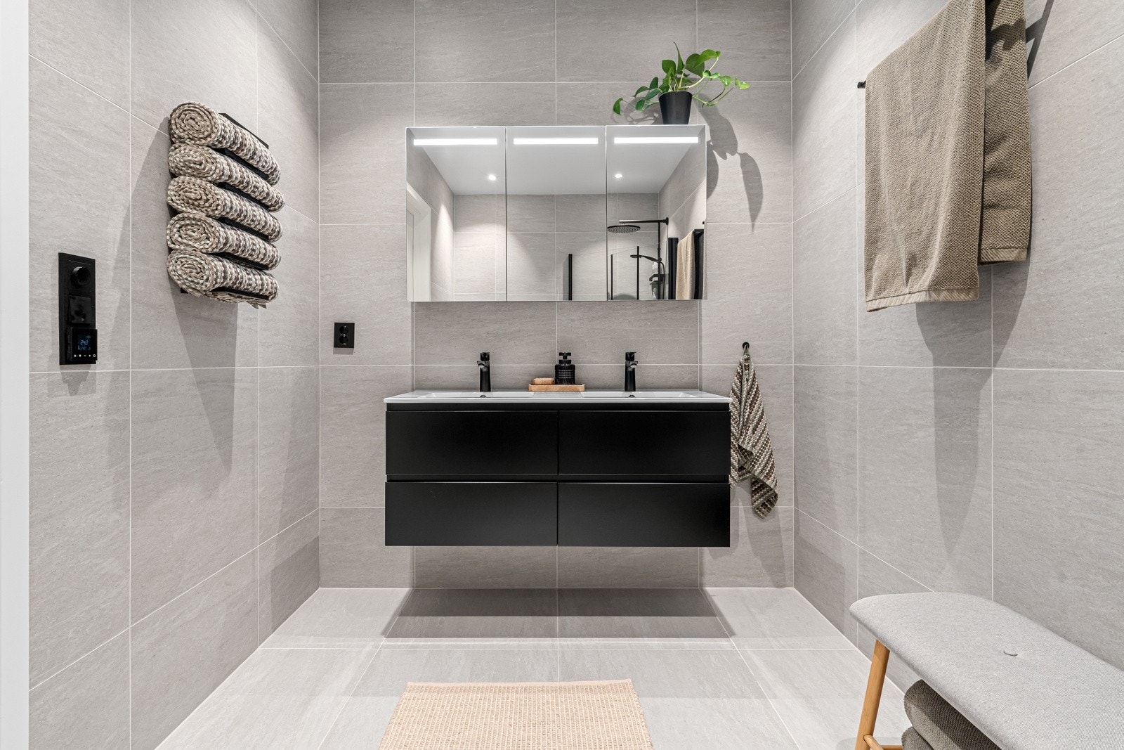 | Standard | Innvendige overflater: Gulvene har fliser og parkett. Veggene har malt gips. Himlingene har malt gips Kjøkken: Kjøkkeninnredning av laminerte skrog med laminerte slette fronter, laminert benkeplate med nedfelt oppvaskkum i kompositt med ett-greps blandebatteri. Belysning under overskap. Kjøkkenet er utstyrt med integrerte hvitevarer som kjøleskap, fryseskap, oppvaskmaskin med vannstoppsystem, induksjonstopp med komfyrvakt, kombinert steke/mikrobølgeovn og stekeovn. Kjøkkenventilator med avtrekk ut yttervegg. Kjøkken hybel: Kjøkkeninnredning av laminerte skrog med laminerte slette fronter, laminert benkeplate med nedfelt oppvaskkum i stål med ett-greps blandebatteri. Belysning under overskap. Kjøkkenet er utstyrt med integrerte hvitevarer som kjøl/fryseskap, oppvaskmaskin med vannstoppsystem, induksjonstopp med komfyrvakt og stekeovn. Kjøkkenventilator med avtrekk ut via balansert ventilasjonsanlegg. Bad 1.etasje: Veggene har fliser. Sparklet og malt gips i himlingen. Gulvet er flislagt. Termostatstyrte elektriske varmekabler i rommet. Våtrommet har plastsluker og foliemembran med dokumentert utførelse. Badet har innredning med heldekkende servanter og ett-greps blandebatteri, vegghengt speilskap med lys, vegghengt toalett, badekar og dusjhjørne med glassdører. Vaskerommet har innredning med nedfelt utslagsvask, ett-greps blandebatteri, opplegg for vaskemaskin og takhengt tørkesnor. Det er avtrekk via ventil i himling tilkoblet balansert ventilasjonsanlegg og tilluft via luftespalte under dørbladet. Bad 2.etasje: Veggene har fliser. Sparklet og malt gips i himlingen. Gulvet er flislagt. Termostatstyrte elektriske varmekabler i rommet. Gulvet har tilfredsstillende fall mot sluk. Våtrommet har plastsluk og foliemembran med dokumentert utførelse. Våtrommet har innredning med heldekkende servant og ett-greps blandebatteri, vegghengt speilskap med lys, vegghengt toalett og dusjhjørne med glassdører. Det er avtrekk via ventil i himling tilkoblet balansert ventilasjonsanlegg og tilluft via luftespalte under dørbladet. Bad hybel: Veggene har våtromsplater. Himlingen har sparklet og malt gips. Gulvet er flislagt. Termostatstyrte elektriske varmekabler i rommet. Gulvet har tilfredsstillende fall mot sluk. Våtrommet har plastsluk og foliemembran med dokumentert utførelse. Våtrommet har innredning med heldekkende servant og ett-greps blandebatteri, vegghengt speilskap med lys, gulvmontert toalett, dusjhjørne med glassdører og opplegg for vaskemaskin. Det er avtrekk via ventil i himling tilkoblet balansert ventilasjonsanlegg og tilluft via luftespalte under dørbladet. Tekniske installasjoner: Vannledninger av plast (rør-i-rør). Stoppekraner er plassert i rørskap på bad/vaskerom. Kraner er funksjonstestet og har tilfredsstillende vannmengde/trykk ved samtidig tapping. Avløpsrør av plast. Boligen har balansert ventilasjon. Varmtvannstanken er på ca. 200 liter plassert i vaskerommet. Varmtvannstanken er på ca. 100 liter plassert i kjøkkeninnredning i hybel. Fordeling av tilstandsgrader: TG 0 - Ingen avvik TG 1 - Mindre eller moderate avvik TG 2 - Avvik som ikke krever umiddelbare tiltak TG 2 - Avvik som kan kreve tiltak TG 3 - Store eller alvorlige avvik TG IU - Konstruksjoner som ikke er undersøkt TGIU: - Hele takkonstruksjonen er gjenbygget. Det er ingen mulighet til vurdering utover alder og observasjoner fra underliggende etg. - Tomten er snødekt og derfor ikke nærmere vurdert. - Det er pga bygningsmessige hindringer ikke fysisk mulig å foreta hulltaking i vegg bak våtsone. TG2: - Bad/vaskerom hybel > Overflater vegger og himling Det er vindu/dør med ikke fuktbestandige materialer i våtsonen (ved vask, dusj, badekar, osv.), løsningen eller byggematerialet er uegnet |