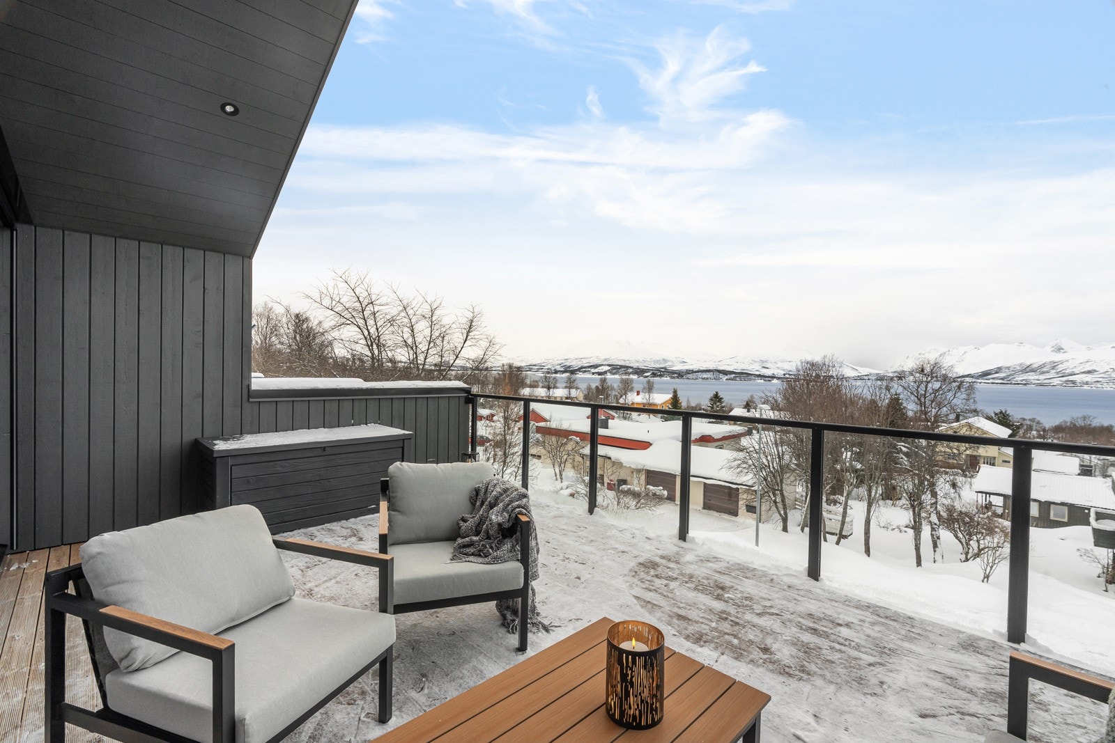 Velkommen til Norrønavegen 6B - Innholdsrik og moderne bolig i rekke med fantastisk utsikt og 2-roms utleie i populært boområde. Huset er oppført i 2023! Boligen har meget god planløsning hvor utsikten er ivaretatt fra både stue og kjøkken, Fire so verom samlet på ett plan. Vestvendt veranda med delvis takoverbygg og panoramautsikt over Ersfjordtraseen, samt markterrasse med morgensol. Garasje og gode bodløsninger. Ski-in/ski-out, ca. 100 m til skiløype. Høydepunkter: Byggeår 2023. 2-roms utleiedel med gode leieinntekter.. To delikate bad. Malt utvendig 2024.. Garasje med oppbevaringsplass.. Gode lagringsmuligheter både inne og utebod. Samt sykkelbod. . Optimale sol- og utsiktsforhold med både vestvendt altan og markterrasse.. Ski-in/ski-out. 100 meter fra skiløypa og Tromsømarka. . Velkommen til visning!