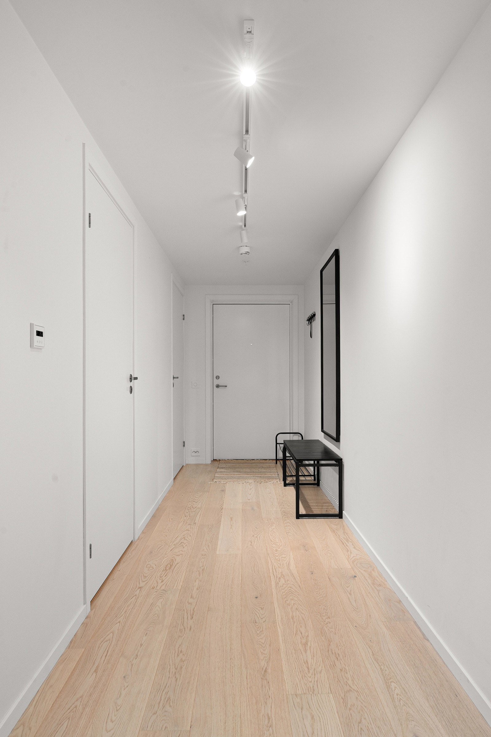 | Standard | Innvendige overflater: Gulvene har parkett. Veggene har sparklet og malt gips. Himlingene har sparklet og malt gips. Kjøkken: Kjøkkeninnredning av laminerte skrog med laminerte slette fronter, laminert benkeplate med nedfelt oppvaskkum i stål med ett-greps blandebatteri. Belysning under overskap. Kjøkkenet er utstyrt med integrerte hvitevarer som kjøl/fryseskap, oppvaskmaskin med vannstoppsystem, induksjonstopp med komfyrvakt og stekeovn. Bad: Våtrommet består av en baderomskabin. Baderommet har utstedt teknisk godkjenning som dokumentasjon. Veggene har fliser. Lakkerte metallplater i himlingen. Gulvet er flislagt. Termostatstyrte elektriske varmekabler. Gulvet har tilfredsstillende fall mot sluk. Våtrommet har plastsluk og smøremembran med dokumentert utførelse. Våtrommet har innredning med heldekkende servant og ett-greps blandebatteri, vegghengt speil med lys, vegghengt toalett, dusjhjørne med glassdører og opplegg for vaskemaskin. Det er avtrekk via ventil i himling tilkoblet balansert ventilasjonsanlegg og tilluft via luftespalte under dørbladet. Tekniske installasjoner: Vannledninger av plast (rør-i-rør). Stoppekraner plassert i rørskap på badet. Kraner er funksjonstestet og har tilfredsstillende vannmengde/trykk ved samtidig tapping. Avløpsrør av plast. Boligen har balansert ventilasjon. Ventilasjonsaggregat plassert i himling i entré. Leiligheten har varmtvann via fjernvarme. Leiligheten blir varmet opp med radiatorer som er tilkoblet fjernvarme (vannbåren). Takstingeniøren er ikke gjort kjent med fjernvarmesystemet, da dette faller under sameiets vedlikeholdsansvar. Fordeling av tilstandsgrader: TG 0 - Ingen avvik TG 1 - Mindre eller moderate avvik TG 2 - Avvik som ikke krever umiddelbare tiltak TG 2 - Avvik som kan kreve tiltak TG 3 - Store eller alvorlige avvik TG IU - Konstruksjoner som ikke er undersøkt Ingen avvik. |