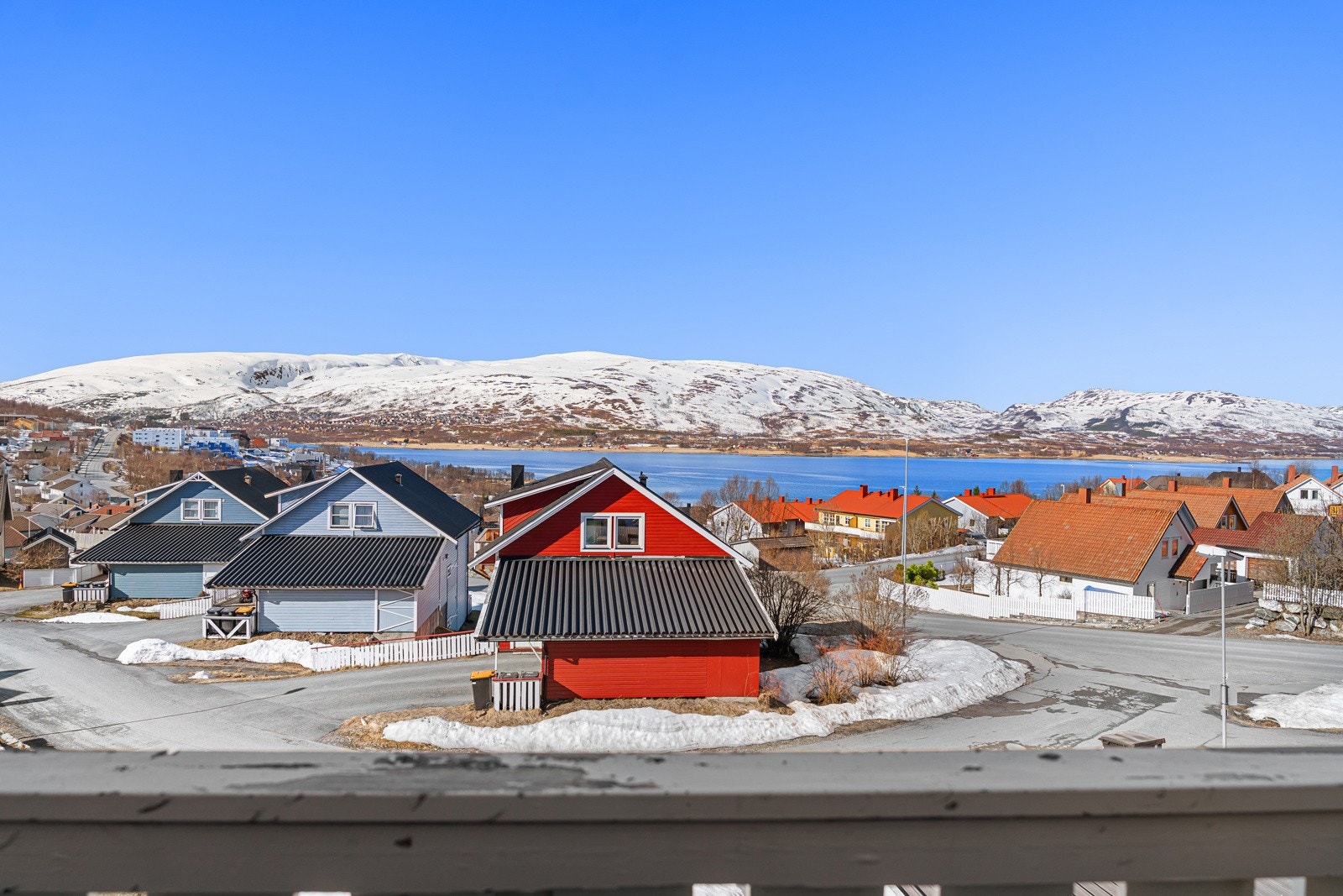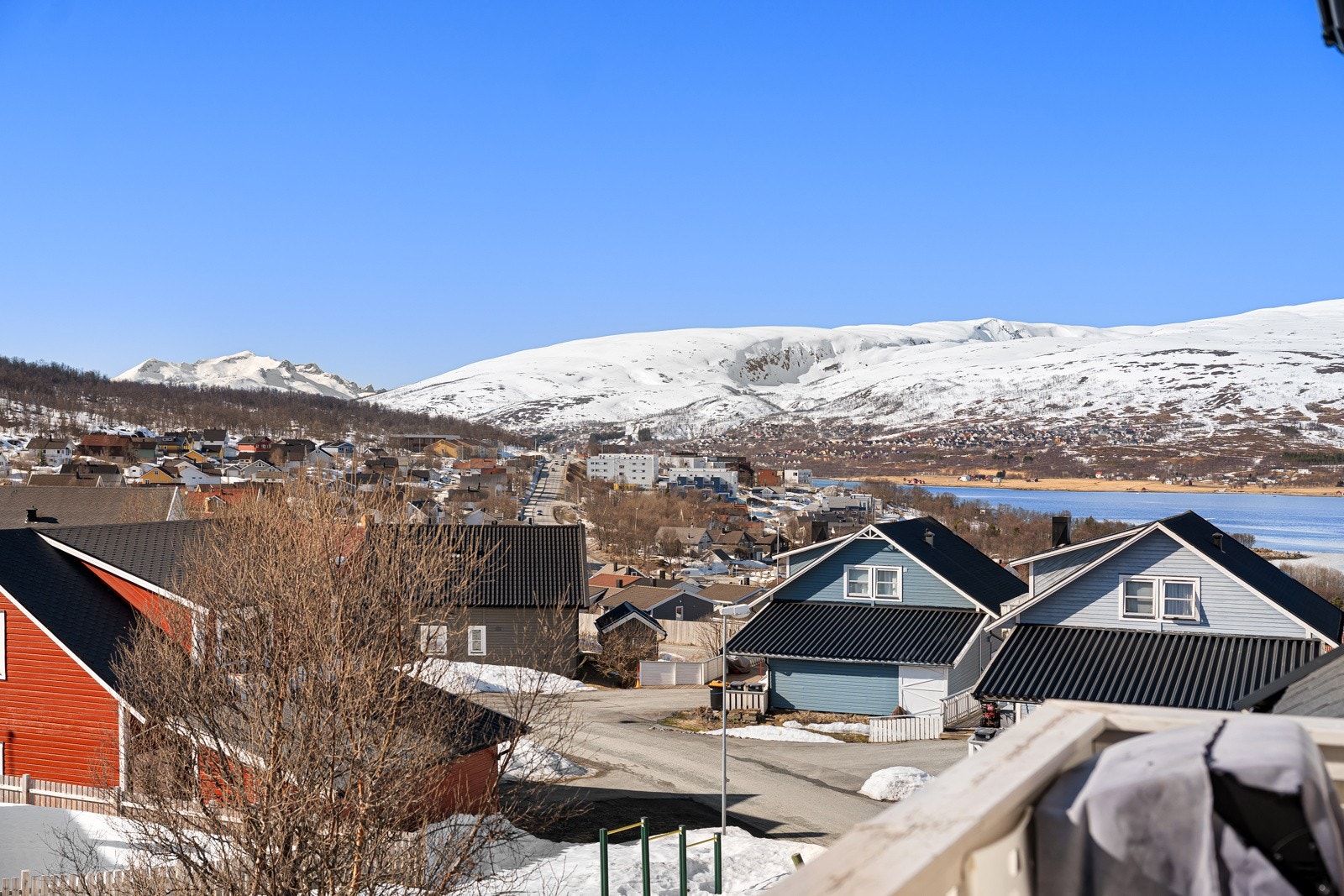 | Beliggenhet | Leiligheten ligger i 3. etasje og har adkomst via utvendig trapp med egen inngang. Gode sol/lysforhold med vestvendt utsikt. Eiendommen ligger i et veletablert og rolig boområde i Hamna, nord på Tromsøya. Barnevennlig beliggenhet med umiddelbar nærhet til lysløype og skog, samt kort avstand til skole/barnehager og dagligvarebutikk. Gode bussforbindelser mot sentrum og UNN/UiT. |