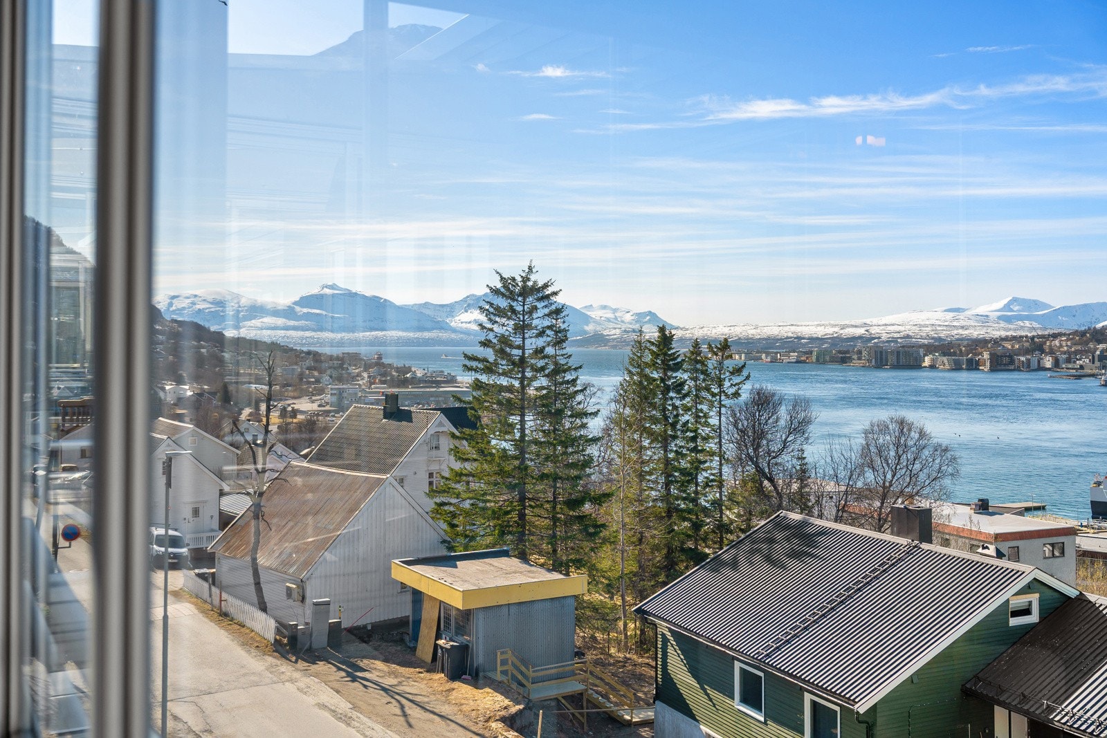 | Beliggenhet | Bellevue har en meget sentral og fin beliggenhet like ovenfor Tromsøysundbrua og rett sør for Tromsdalen Kirke. Det er kort vei til bl.a. buss, kiosk, dagligvarebutikk, barneskole og barnehager. Gangavstand til Pyramiden kjøpesenter med flere servicetilbud, og til sentrum. Flotte friluftsmuligheter lenger inn i Tromsdalen hvor man finner lysløype, turstier og ikke minst Fjellheisen. |