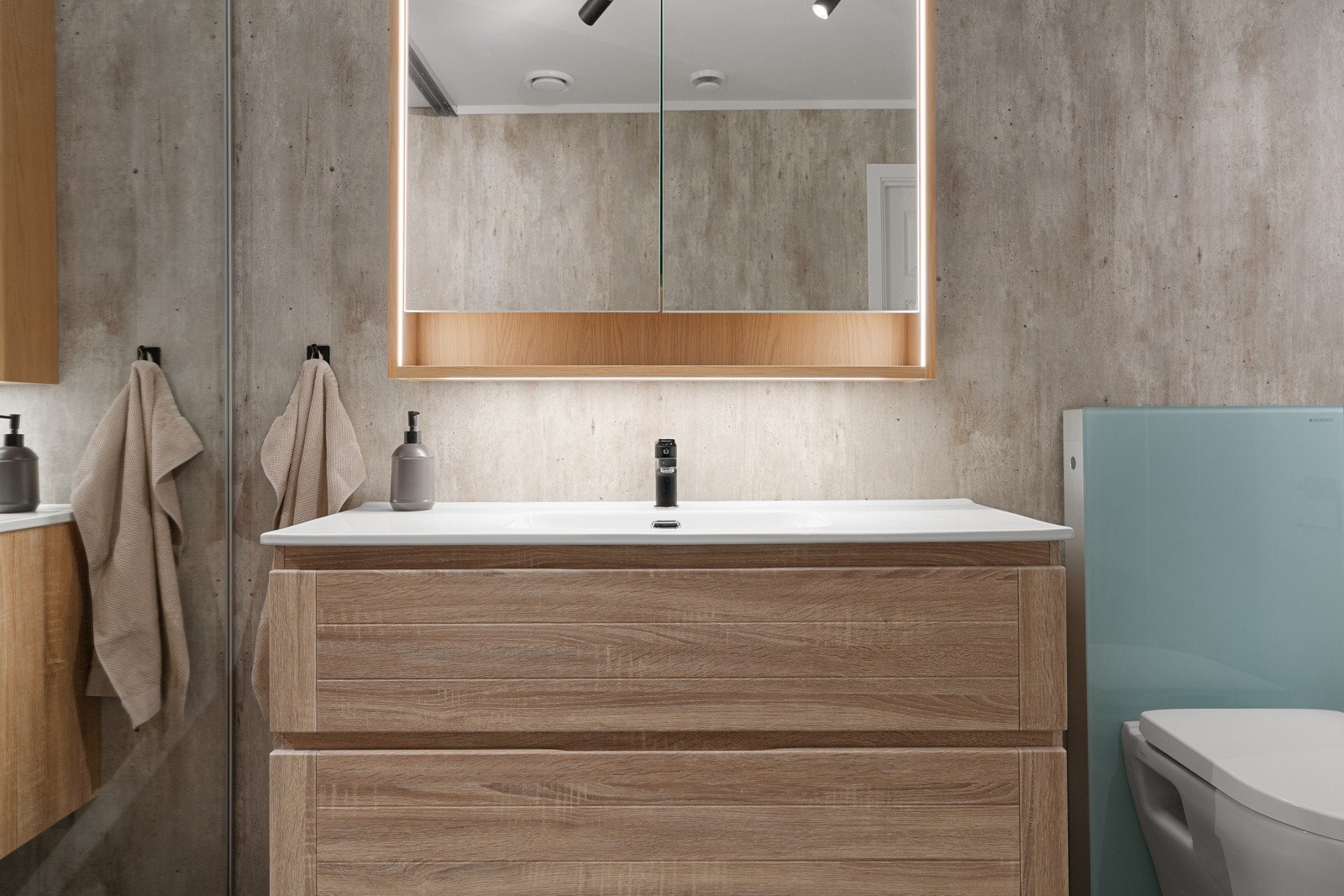 | Standard | Innvendige overflater: Gulvene har laminat. Veggene har malte plater, gips og malt betong. Himlingene har malt betong. Kjøkken: Kjøkkeninnredning av laminerte skrog med laminerte slette fronter, heltre benkeplate med nedfelt oppvaskkum i kompositt med ett-greps blandebatteri. Belysning under overskap. Kjøkkenet er utstyrt med integrerte hvitevarer som kjøl/fryseskap, oppvaskmaskin med vannstoppsystem, induksjonstopp med komfyrvakt og stekeovn. Bad: Veggene har våtromsplater. Himlingen har malte plater. Våtrommet har innredning med heldekkende servant og ett-greps blandebatteri, vegghengt speil med lys, vegghengt toalett, dusjhjørne og opplegg for vaskemaskin. Tekniske installasjoner: Vannledninger: Vannledninger av plast (rør-i-rør). Stoppekraner er plassert i rørskap på badet. Hovedstoppekran er plassert i rørsjakt på badet. Avløpsrør: Avløpsrør av plast. Avløpsrørene som ligger utenfor leilighetens grenser omfattes av borettslagets vedlikeholdsplikt, og er derfor ikke vurdert i denne rapporten. Tilstandsgrad (TG) er satt med utgangspunkt i det som er synlig og tilgjengelig inne i leiligheten. Dersom rørene ikke er tilgjengelige for visuell inspeksjon, er vurderingen basert på rørenes alder og tilgjengelig dokumentasjon. Forhold vedrørende avløpssystemet utenfor boenheten må følges opp av borettslaget. Ventilasjon: Leiligheten har naturlig ventilasjon via ventiler i vindu og periodisk avtrekk fra kjøkken og bad. Varmtvannstank: Varmtvannstank på ca. 115 liter av merket Ctc fra 2019 plassert på bad/vaskerom. Fordeling av tilstandsgrader: TG0: Ingen avvik TG1: Mindre eller moderate avvik TG2: Avvik som kan kreve tiltak TG3: Store eller alvorlige avvik TG IU: Konstruksjoner som ikke er undersøkt TG2: Balkong: Det er en vertikal sprekk med løs murpuss på murvegg mot sør. Innvendige dører: Det er fuktsvell i nedre del av baderomsdøren. Overflater gulv: Det er stedvis dype og slitte fuger mellom gulvflisene. Sluk, membran og tettesjikt: Mer enn halvparten av forventet brukstid er passert på slukløsningen ved varmtvannstanken. Sluken ved varmtvannstank er fornyet med ny klemring, men det opprinnelige sluket er fra eldre tidspunkt. Det er glippe i mykfug ved rørgjennomføring under servant. HMS: Utbygger har gjennom søknad om brukstillatelse/ferdigattest bekreftet at alle kontrollerklæringer foreligger og at bygget er oppført iht. gitte tillatelser og gjeldende forskrifter. Vurdering av forhold som kan ha betydning for helse, miljø og sikkerhet i boligen. Dette inkluderer vurdering av balkonger, terrasser og trapper med hensyn til rekkverk, rekkverkshøyder, åpninger i rekkverk, håndløpere og tilsvarende forhold vurdert opp mot dagens krav der dette er relevant. Videre er det gjort en vurdering av radonforhold, elektrisk anlegg og branntekniske forhold, herunder røykvarslere, brannslukningsutstyr, rømningsveier og synlige avvik i branncelleinndeling. I tillegg er forstøtningsmurer samt eiendommens beliggenhet i forhold til eventuell flom- og rasfare vurdert. Vurderingene under dette punktet er kun ment som en generell sikkerhetsgjennomgang, og det settes ikke tilstandsgrad (TG) på de forhold som inngår her. Øvrig: Det foreligger godkjente og byggemeldte tegninger, men de stemmer ikke med dagens bruk. Ved takstmanns befaring ble det observert avvik mellom dagens situasjon og de godkjente tegningene. Følgende endringer er registrert: Endret rominndeling: - Det ene "soverommet" er byggemeldt som bod. - WC-rom, bad og vaskerom er slått sammen til ett bad/vaskerom. Anbefaling: Motakst AS anbefaler at det søkes kommunen om godkjenning av de registrerte avvikene, i tråd med plan- og bygningslovens bestemmelser. Saksgebyrer til kommunen vil påløpe, og det må påregnes at enkelte bygningsmessige tiltak kan være nødvendige for å få deler av bygget godkjent i samsvar med regelverket. |