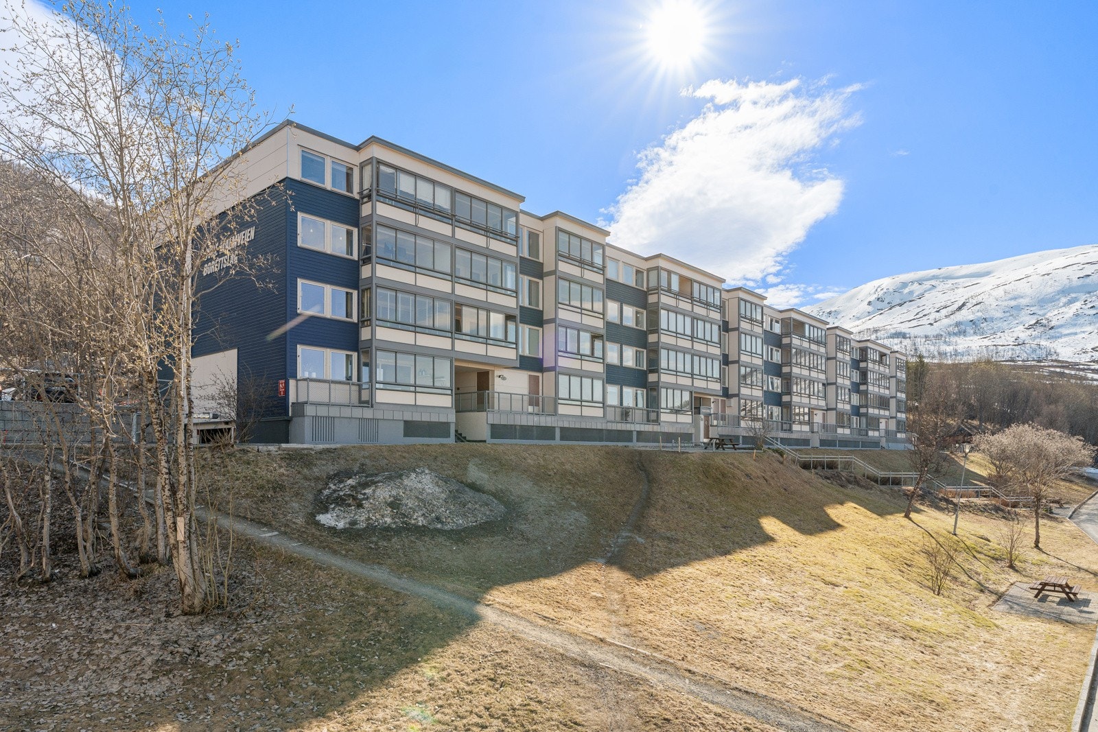 | Beliggenhet | Veletablert boligområde bestående av borettslagsleiligheter i blokker og rekkehus. I nærområdet finner man flere barnehager og barneskoler, ungdomsskole, butikk mv. Umiddelbar nærhet til flott ski og turterreng. Borettslag bestående av vestvendte blokker og rekkehus med utsikt mot Tromsøya, Tromsøysundet og Kvaløyfjellene. Pene fellesområder beplantet med blomster og busker samt flere lekeplasser spredt rundt. |