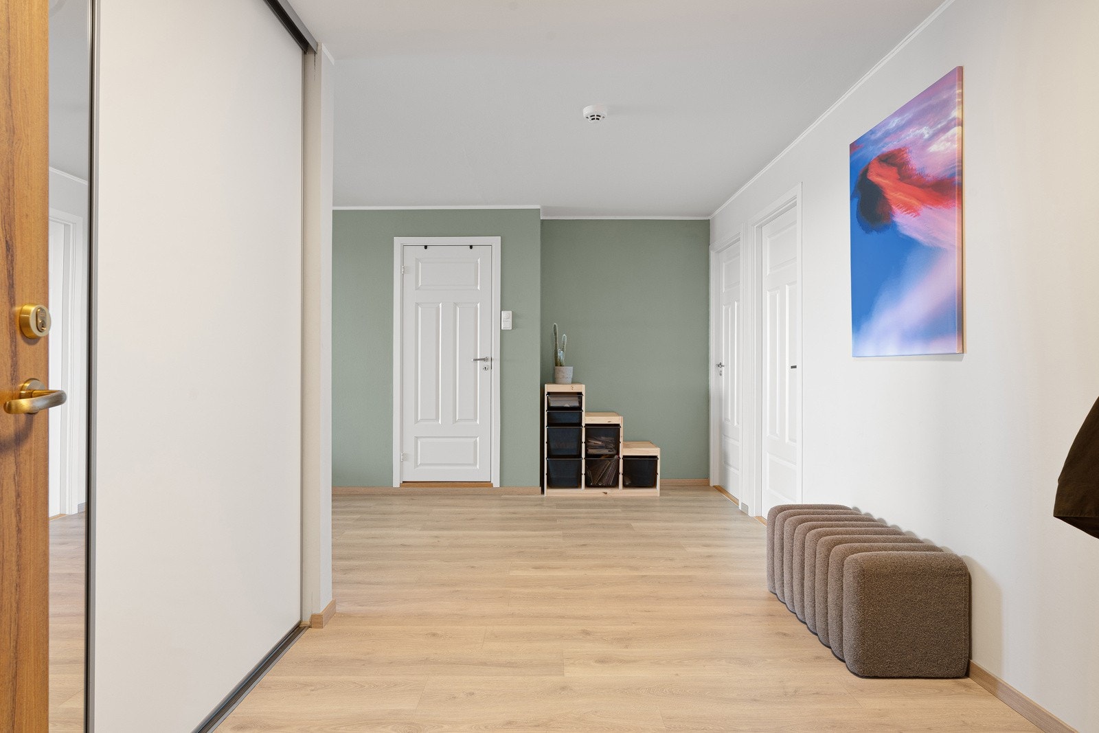 | Møblering/utstyr | Kun integrerte hvitevarer medfølger i handelen. For all innredning i garderobeskap vil dette medfølge handelen, både løs og fast. Se vedlagt løsøre og tilbehørsliste utarbeidet av Norges Eiendomsmeglerforbund. Ta kontakt med eiendomsmegler for nærmere informasjon. |
